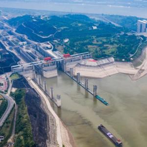 6月9日,轮船行驶在三峡大坝上游三峡五级船闸引航道(无人机照片)。新华社发(郑家裕 摄)