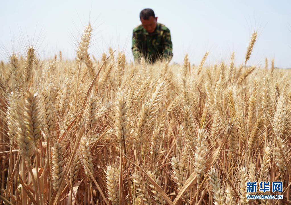 6月8日,在邢台市南和区的农作物种植基地,苏川查看小麦成熟情况。新华社记者 杨世尧 摄