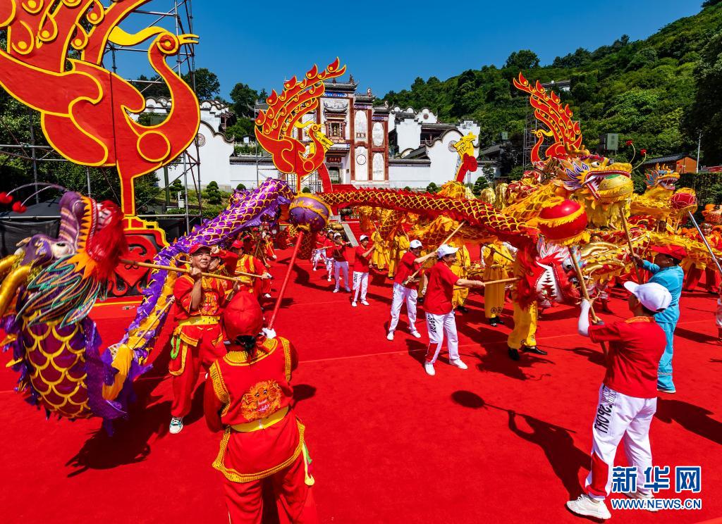 6月11日,屈原故里湖北秭归县的居民在屈原祠前舞龙迎端午。