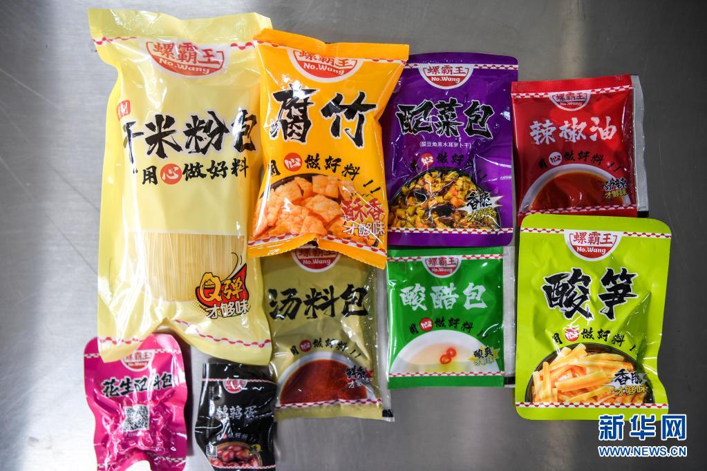 这是广西柳州市一家螺蛳粉生产企业的袋装螺蛳粉和配料(6月11日摄)。