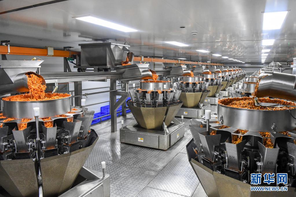 这是广西柳州市一家螺蛳粉生产企业的自动化袋装螺蛳粉生产线(6月11日摄)。