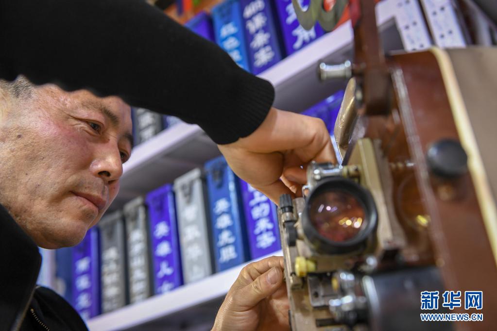6月3日,黄耀辉在修理电影放映机。