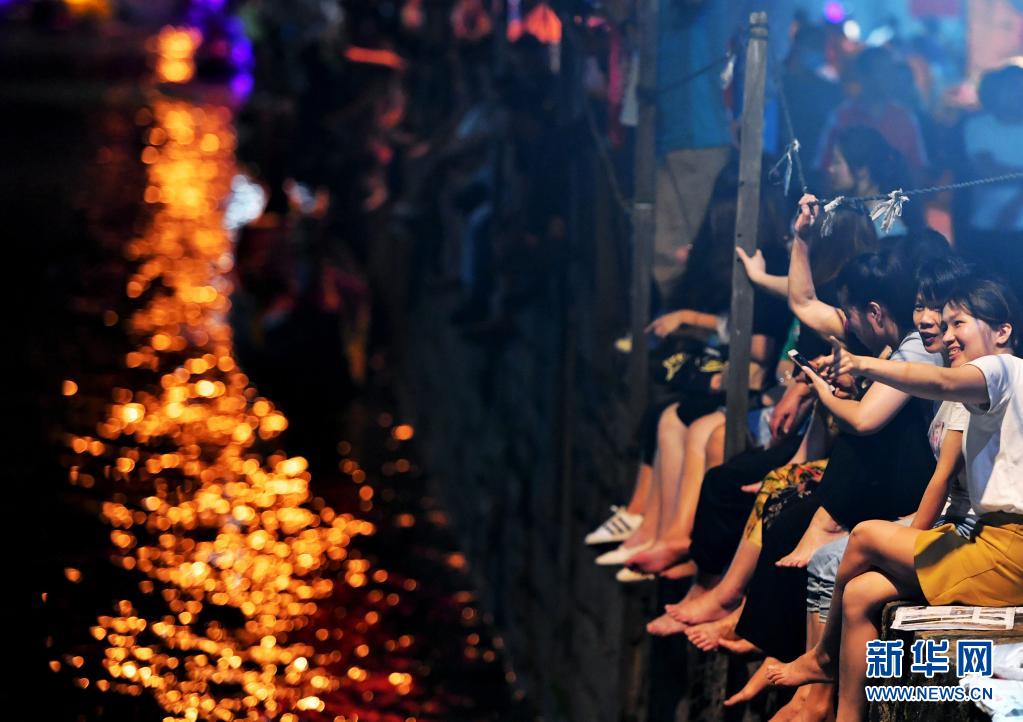 夜色降临,华灯初上,村里灯光辉映,溪中龙舟竞发,南溪两岸及石桥上人潮如涌,热闹非凡,吆喝声、加油声、喝彩声此起彼伏,夜色中的三溪村变成一片欢乐海洋。
