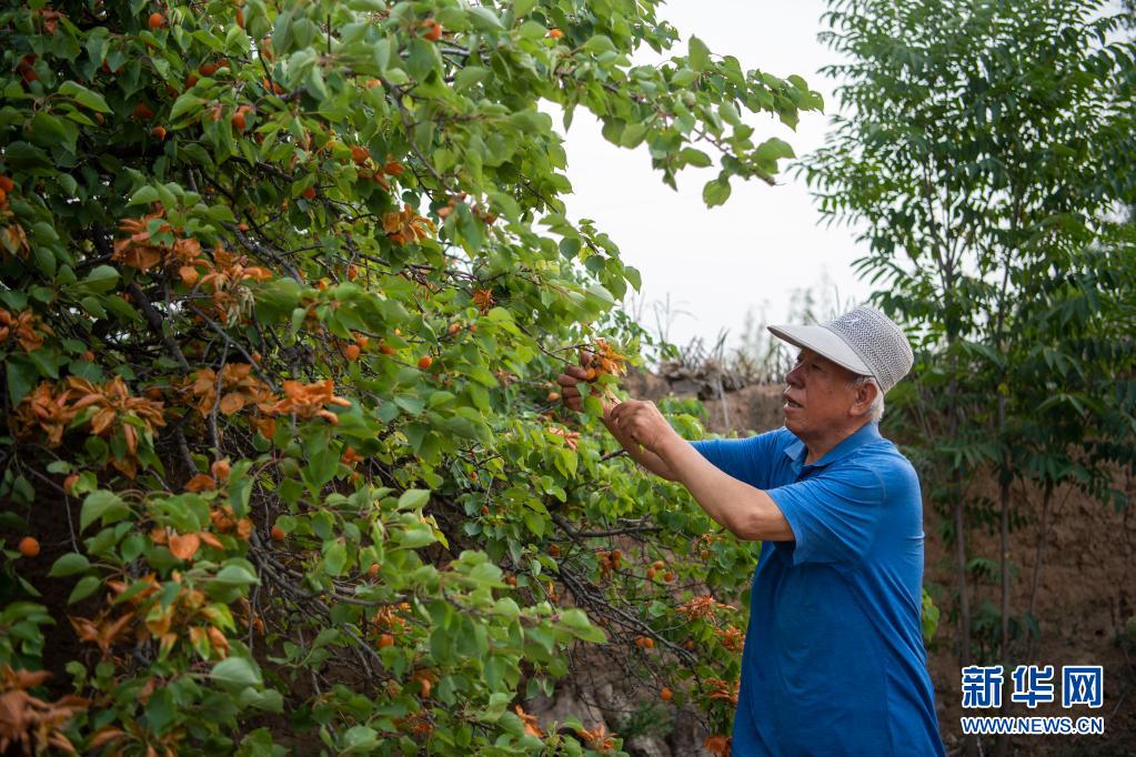 李逢华在浮山县东陈村的家里摘杏(6月8日摄)。新华社记者 杨晨光 摄
