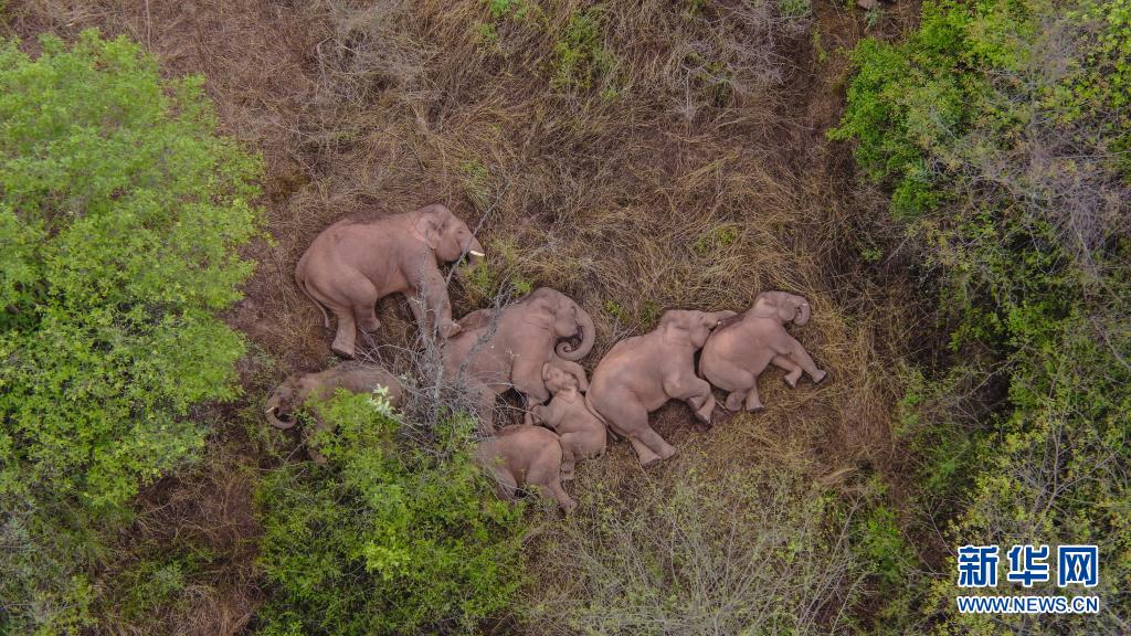 6月7日在昆明市晋宁区夕阳彝族乡拍摄的野象(无人机照片)。