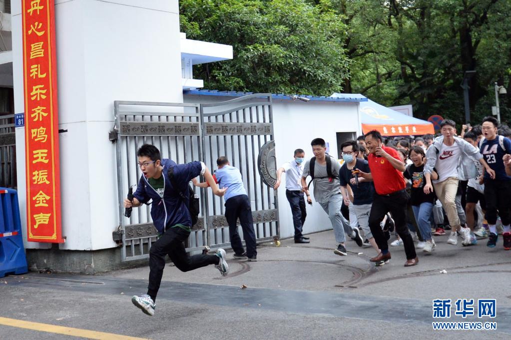 6月9日,考生在考试结束后跑出湖南省长沙市一中考点。