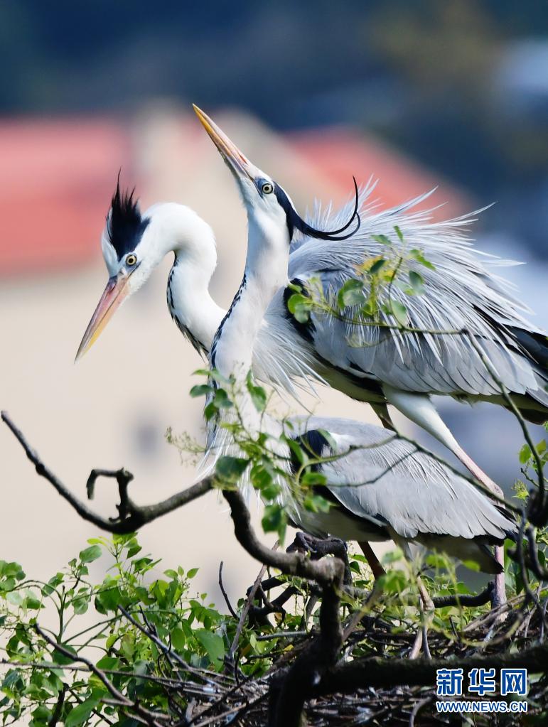 在树上筑巢栖息的苍鹭(6月3日摄)。