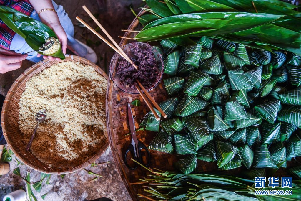 6月8日,湖源乡窈口村村民在包传统灰汤粽。