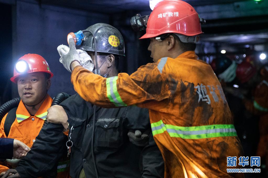 6月6日,在黑龙江龙煤矿业集团鸡西矿业公司滴道盛和煤矿立井事故现场,被困矿工获救升井。