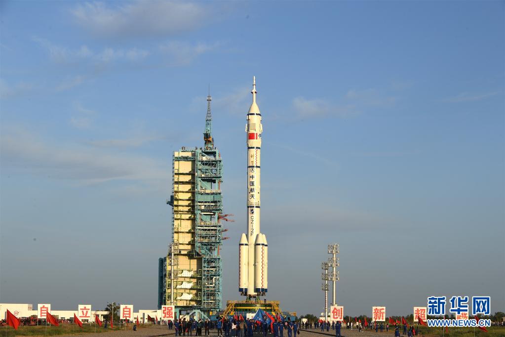 6月9日,神舟十二号载人飞船与长征二号F遥十二运载火箭组合体转运至发射区。