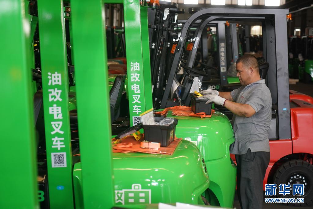 近年来,江苏靖江叉车企业积极加强“油改电”技术研发,大力生产电动叉车,抢占市场份额。当地相关部门多措并举,为企业做好服务和政策引导,推进电能替代,促进节能减排。