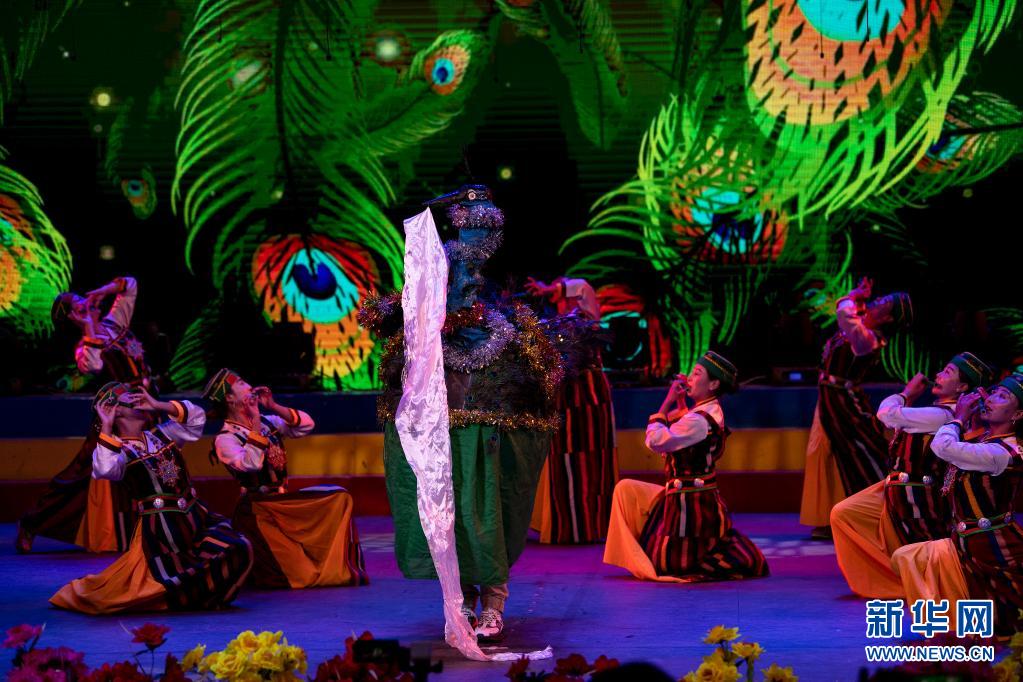 6月12日,在西藏拉萨市的自治区群艺馆,演员表演《孔雀舞》。