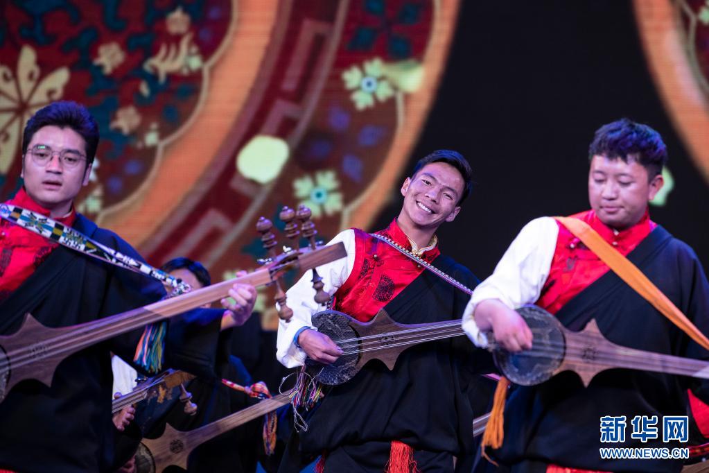 6月12日,在西藏拉萨市的自治区群艺馆,演员表演扎念弹唱《普伊桑林贡巴》。