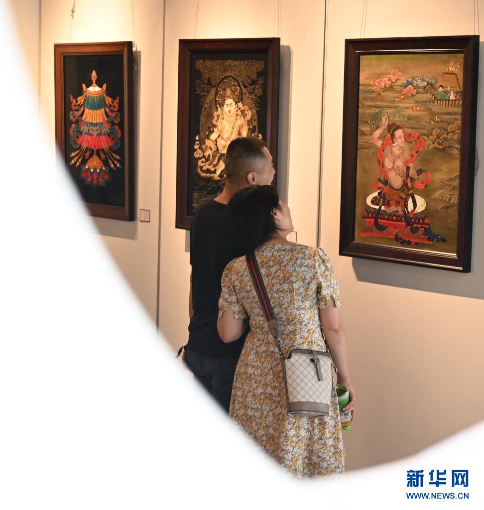 6月12日,市民在福州三坊七巷参观唐卡漆画。