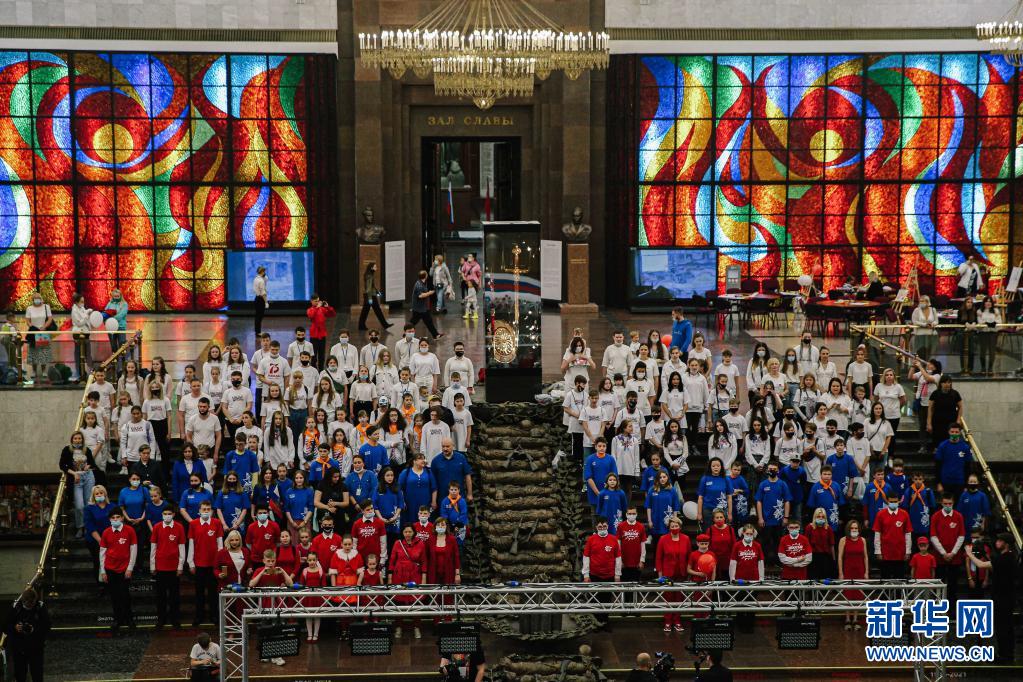 6月12日,人们在俄罗斯首都莫斯科胜利博物馆齐唱国歌,庆祝俄罗斯的国庆日“俄罗斯日”。新华社发(叶甫盖尼·西尼岑 摄)