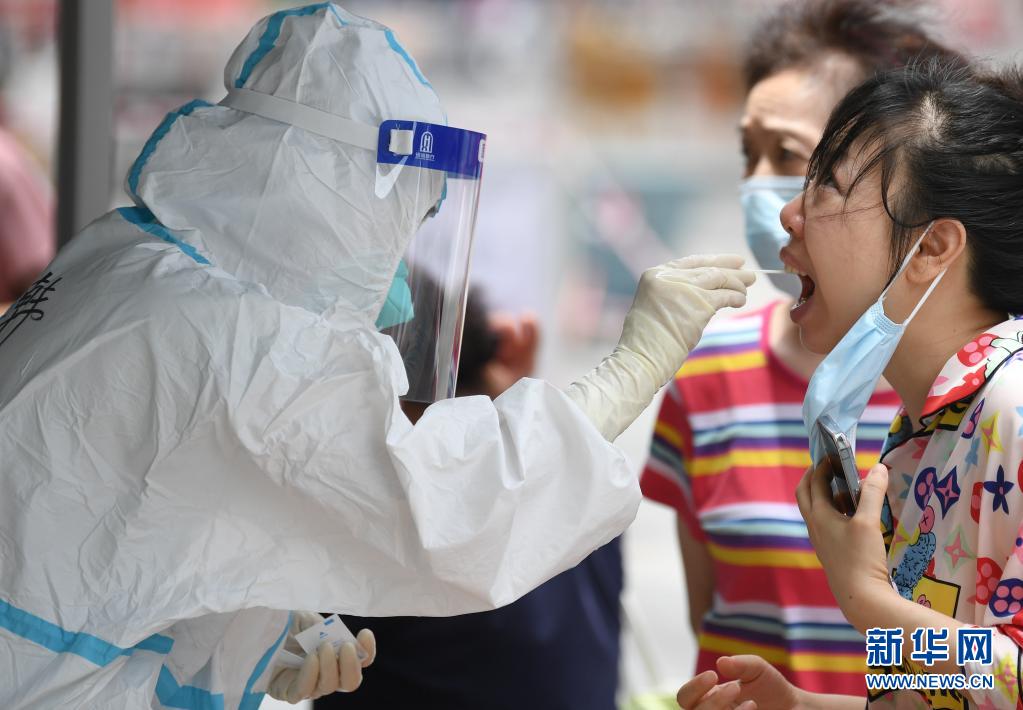 6月12日,在广州荔湾区白鹤洞街广钢新城,医务人员为居民进行核酸检测采样。