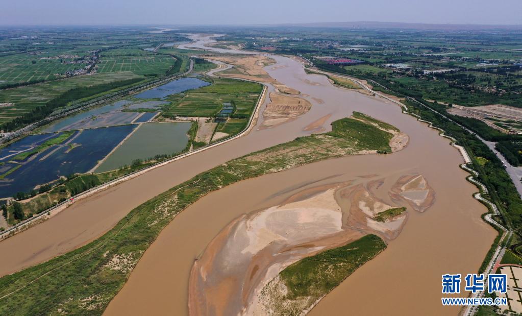 黄河宁夏吴忠段,两岸绿意盎然(无人机照片,2020年6月9日摄)。新华社记者 王鹏 摄