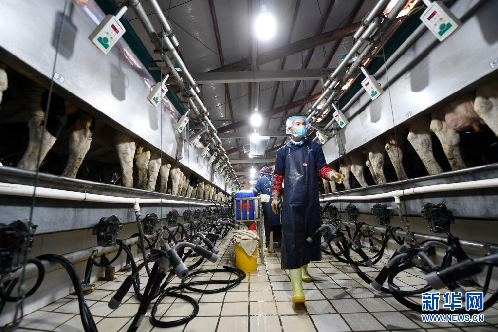 宁夏农垦贺兰山奶业有限公司工作人员在挤奶台工作(2020年11月8日摄)。新华社记者 王鹏 摄