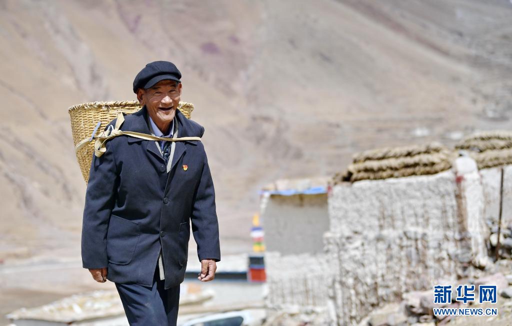米玛老人行走在村里(4月18日摄)。新华社记者 张汝锋 摄