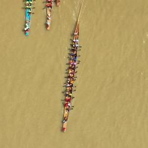 端午节临近,在福建省福州市闽侯县,民间龙舟在大樟溪南港段,以传统龙舟竞渡的方式迎接端午节的到来。