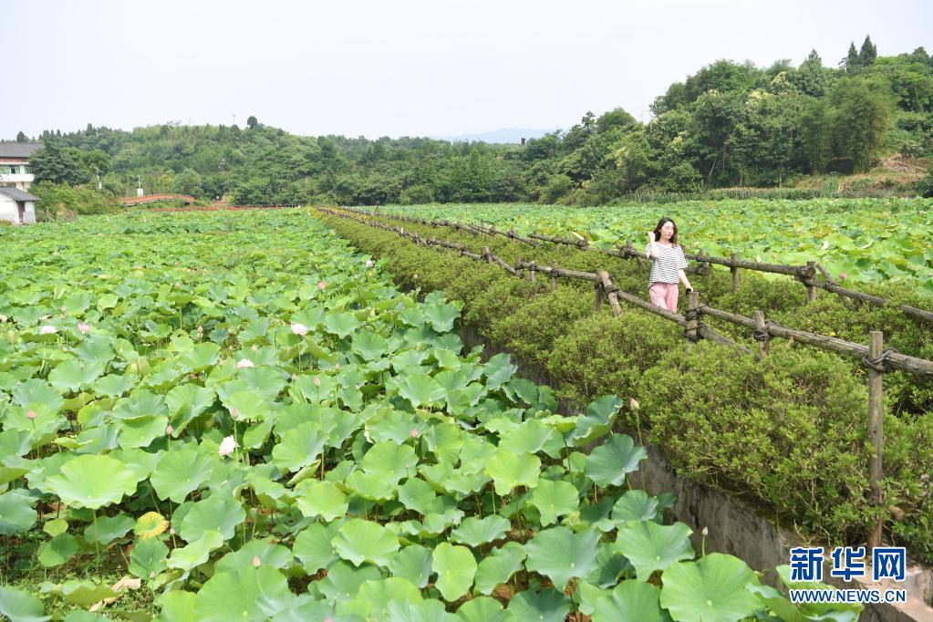 6月11日,游客在重庆市铜梁区土桥镇荷花苑游玩。