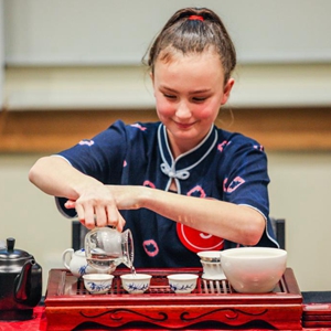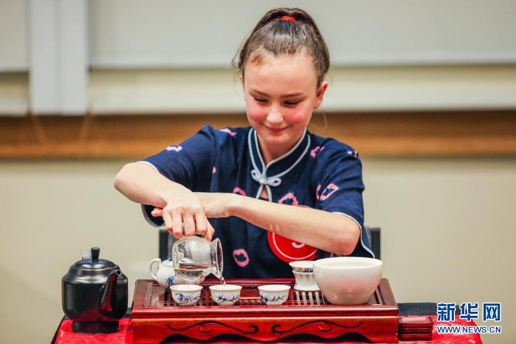 6月13日,在新西兰南岛克赖斯特彻奇举行的“汉语桥”中文比赛新西兰南岛赛区总决赛上,选手在进行茶艺表演。