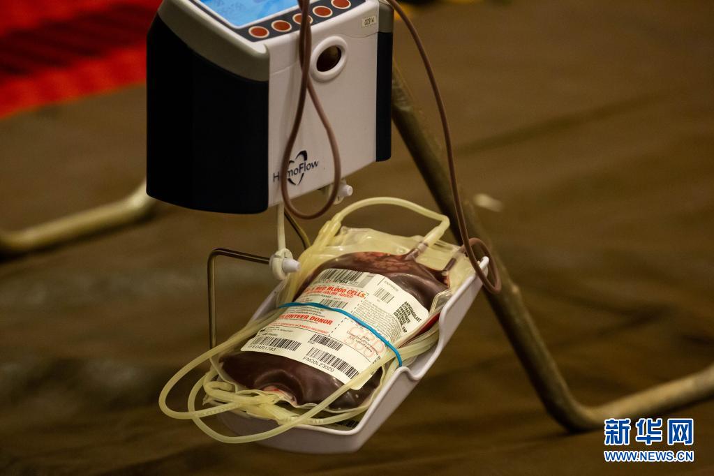这是6月14日在美国纽约州长岛地区的尤宁代尔拍摄的献血志愿者在美国纽约血液中心举行的献血活动上捐献的血液。