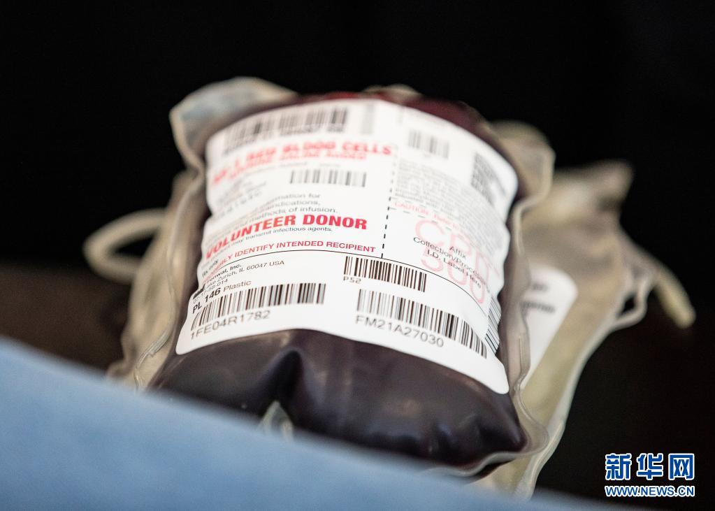 这是6月14日在美国芝加哥的大芝加哥地区红十字会一献血站内拍摄的血袋。新华社发(乔尔·莱纳摄)