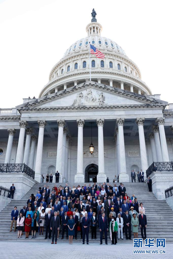 6月14日,美国国会议员在华盛顿的国会大厦外为约60万美国新冠逝者默哀。