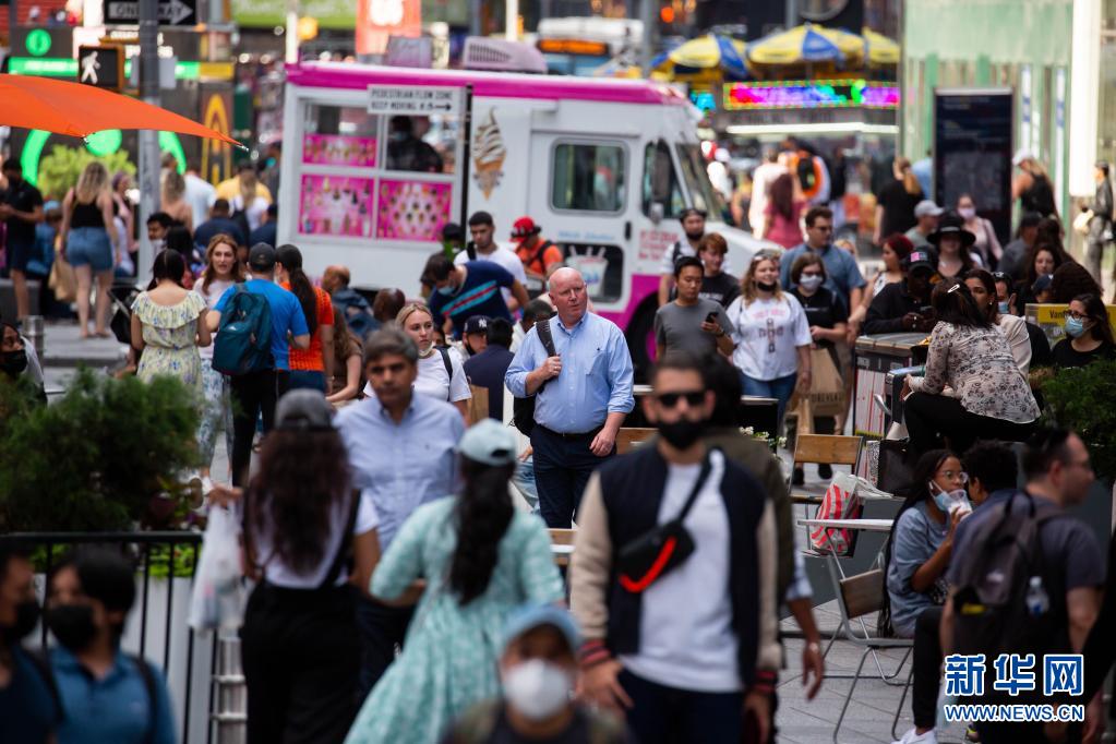 6月15日,人们走在美国纽约时报广场。