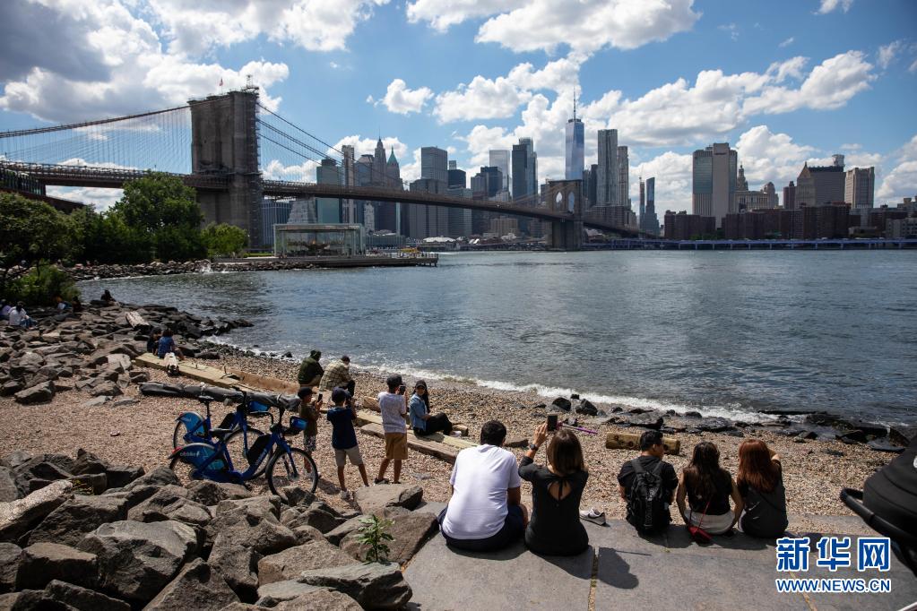 6月15日,人们在美国纽约一处河滨公园休闲。