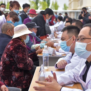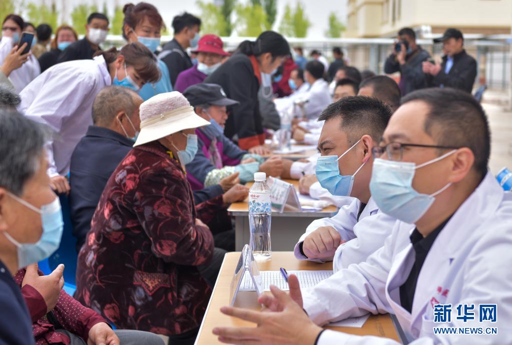 来自浙江的援疆医生在位于阿克苏地区的新疆生产建设兵团第一师医院医共体二团分院开展多学科联合义诊(4月21日摄)。