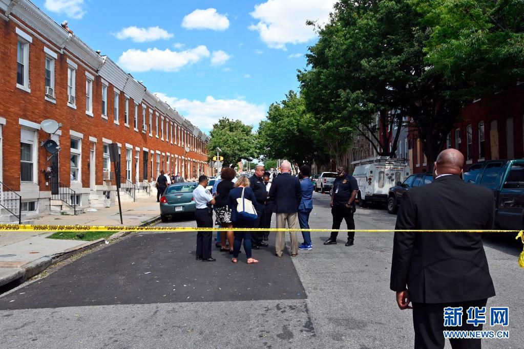6月16日,人们聚集在美国巴尔的摩市的枪击案现场。