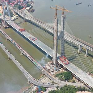 当日,由中国中铁大桥局承建的新建福厦铁路乌龙江大桥举行合龙仪式。新建福厦铁路乌龙江大桥是一座四线高低塔双索面混合梁斜拉桥,是新建福厦铁路全线重点控制性工程。大桥全长739.9米、主跨432米。