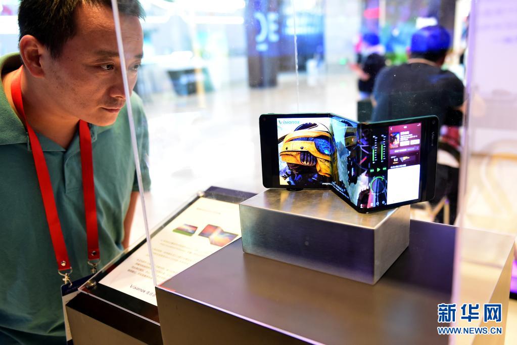 6月17日,参观者在观看一款可折叠显示屏。新华社记者 黄博涵 摄