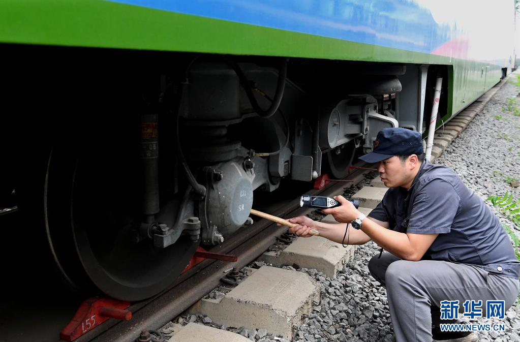 6月17日,郑州车辆段工作人员在对健康快车轴箱进行检查。