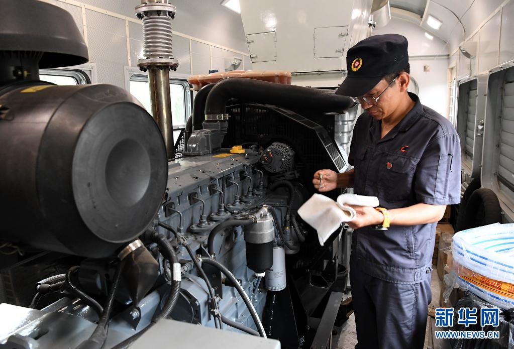 6月17日,郑州车辆段工作人员在检查健康快车发电车柴油机机油状态。