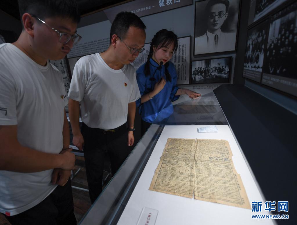 6月17日,党员在讲解员带领下参观“红色报刊史料研学中心”展示的1919年出版的《湘江评论》。