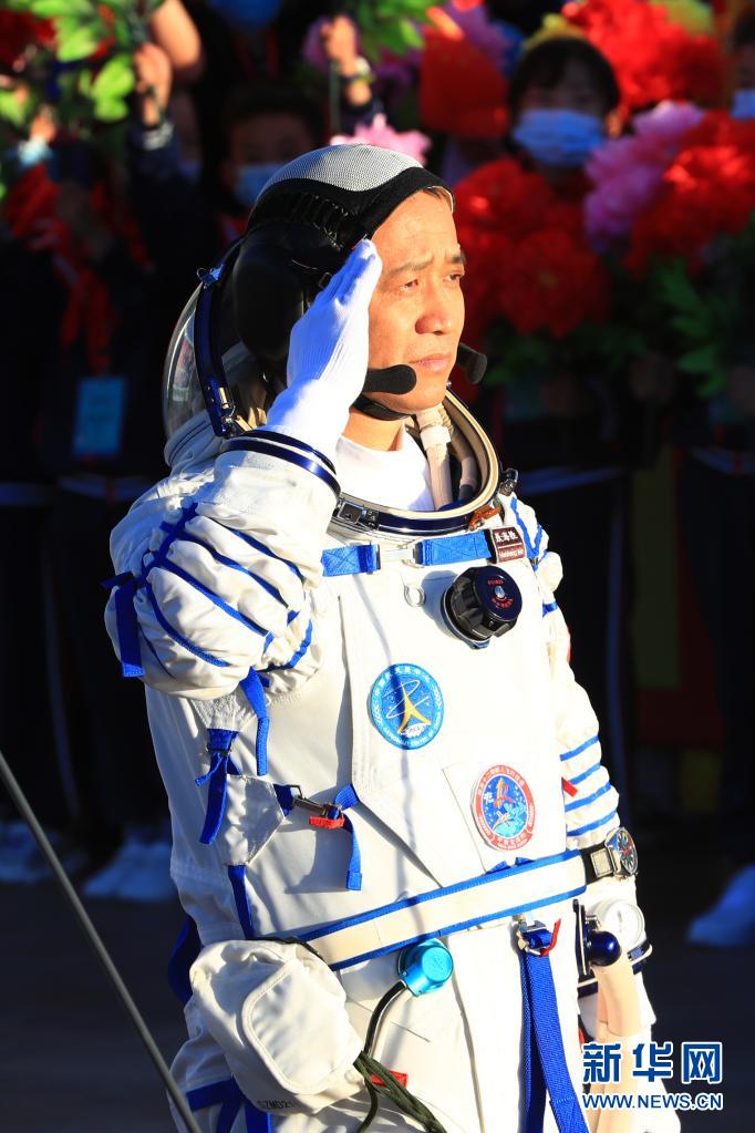 6月17日,神舟十二号航天员出征仪式在酒泉卫星发射中心举行。这是航天员聂海胜在出征仪式上敬礼。
