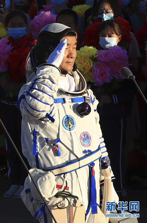 6月17日,神舟十二号航天员出征仪式在酒泉卫星发射中心举行。这是航天员刘伯明在出征仪式上敬礼。