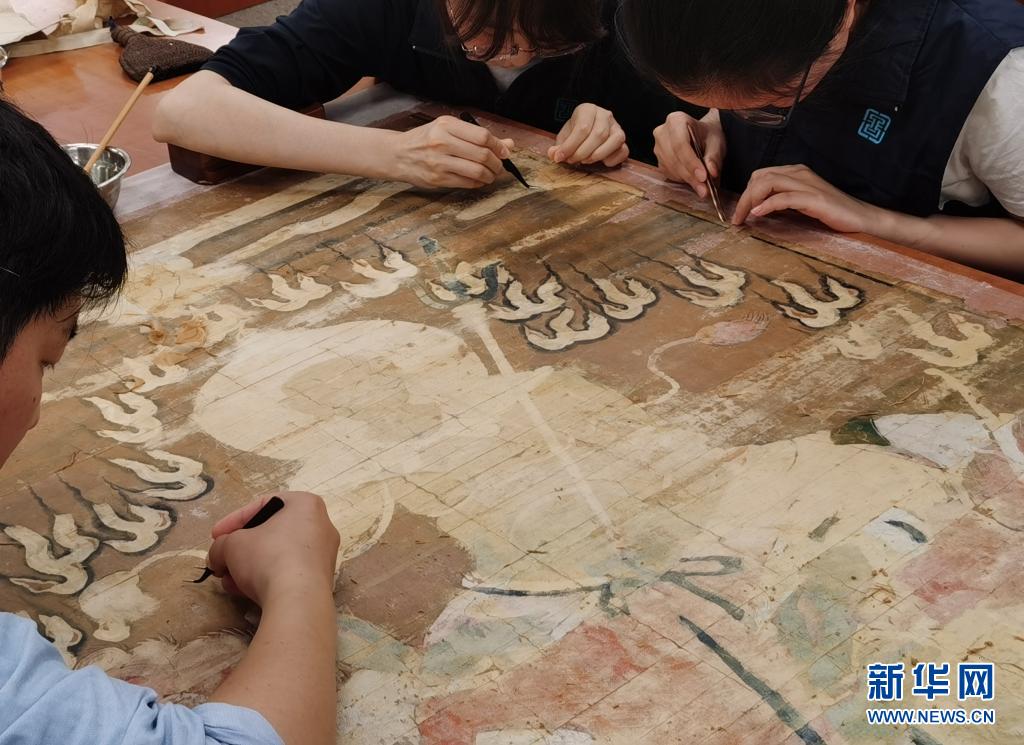 6月17日,国家图书馆古籍修复人员在修复水陆画。