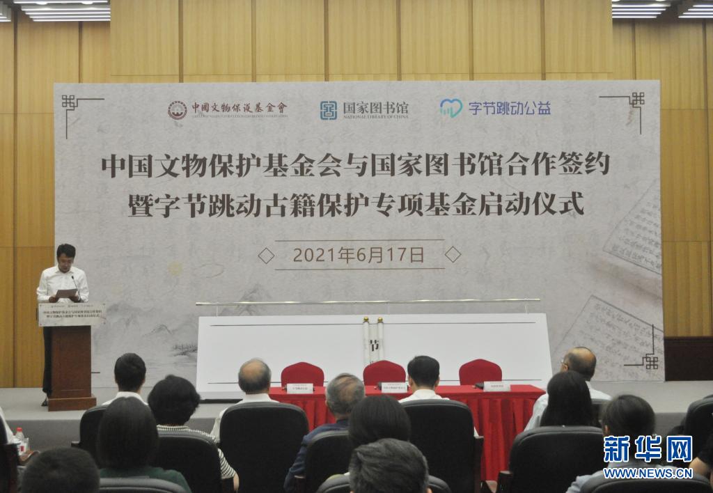 6月17日,中国文物保护基金会与国家图书馆合作签约暨字节跳动古籍保护专项基金启动仪式在北京国家图书馆举行。古籍保护专项基金初期启动资金1000万元,用于国家图书馆中华珍贵古籍修复和专业人才培养、古籍活化与数字化等项目,其中将重点修复《永乐大典》“湖”字册等国家珍贵典籍。
