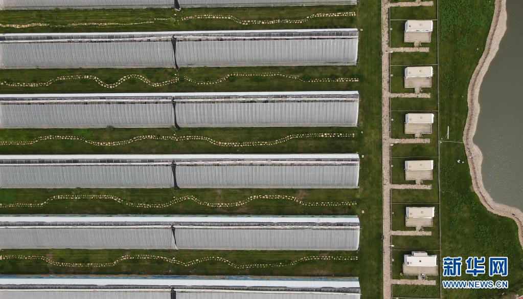 6月18日拍摄的河北省沙河市红石沟生态休闲农场内的种植大棚(无人机照片)。