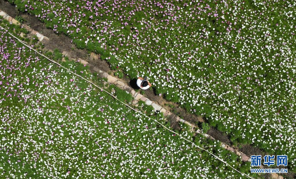 6月18日拍摄的河北省沙河市花乐园内拍照(无人机照片)。