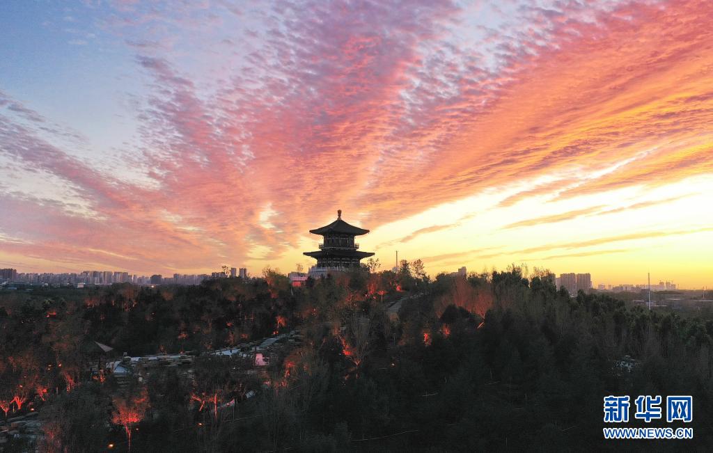 6月17日,河北省第五届园林博览会会址沐浴在晚霞中(无人机照片)。