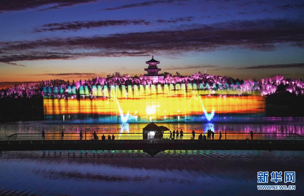6月17日,人们在第五届园林博览会会址观赏水幕秀。新华社记者 杨世尧 摄