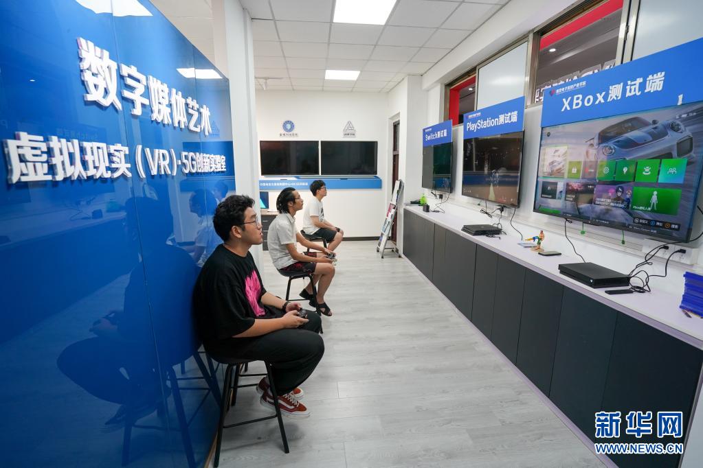 在金陵科技学院动漫学院游戏开发实验室,学生在体验测试各游戏平台的游戏(6月11日摄)。新华社记者 李博 摄