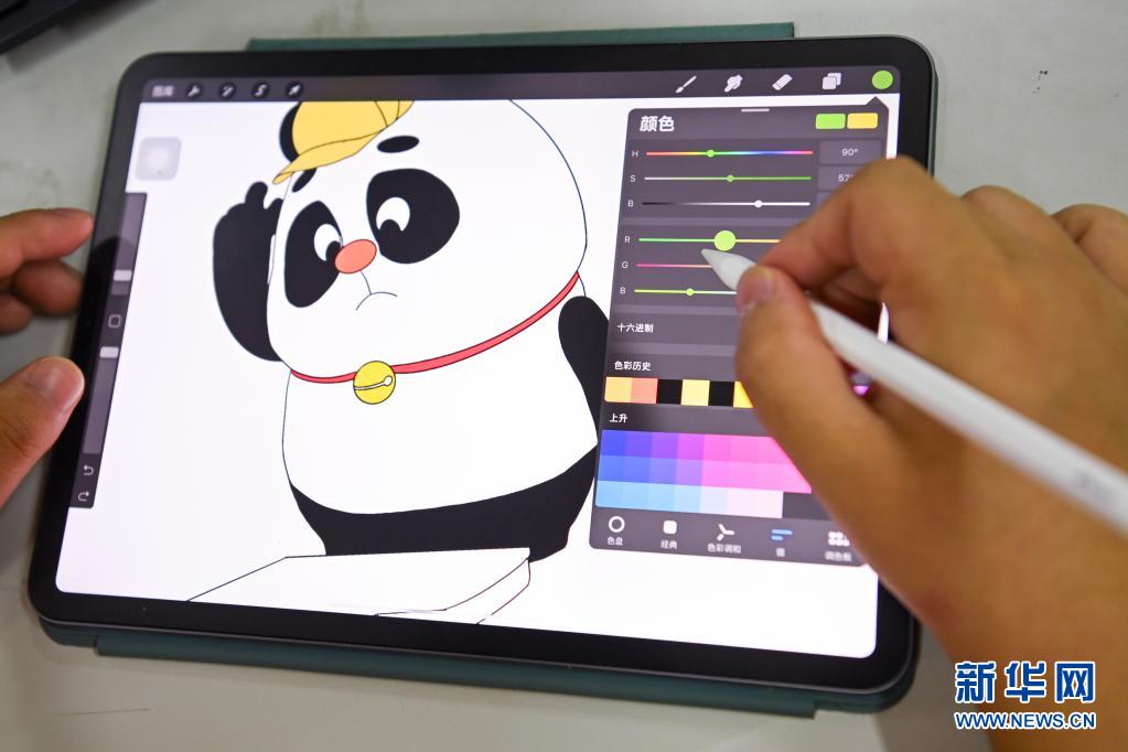 在金陵科技学院动漫学院,一名同学在设计游戏动漫形象(6月17日摄)。新华社记者 李博 摄