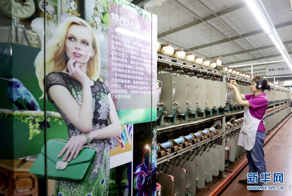 工人在位于浙江省新昌县的达利丝绸(浙江)有限公司加捻生产车间工作(5月22日摄)。