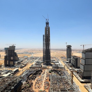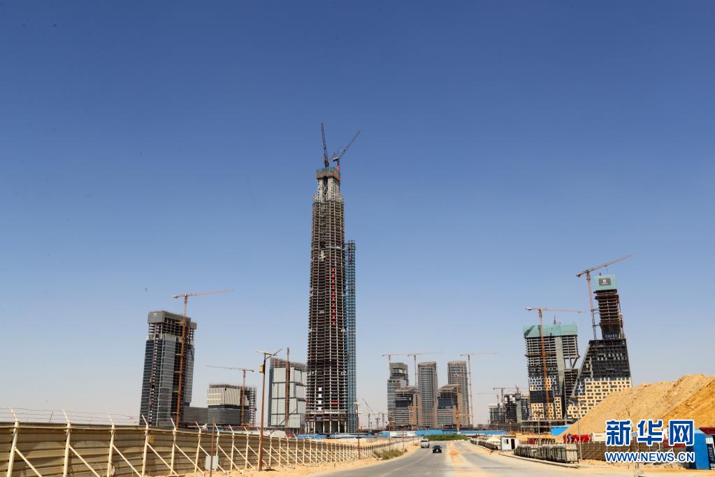 这是6月17日在埃及开罗附近拍摄的埃及新行政首都中央商务区标志塔(中)。新华社记者 隋先凯 摄